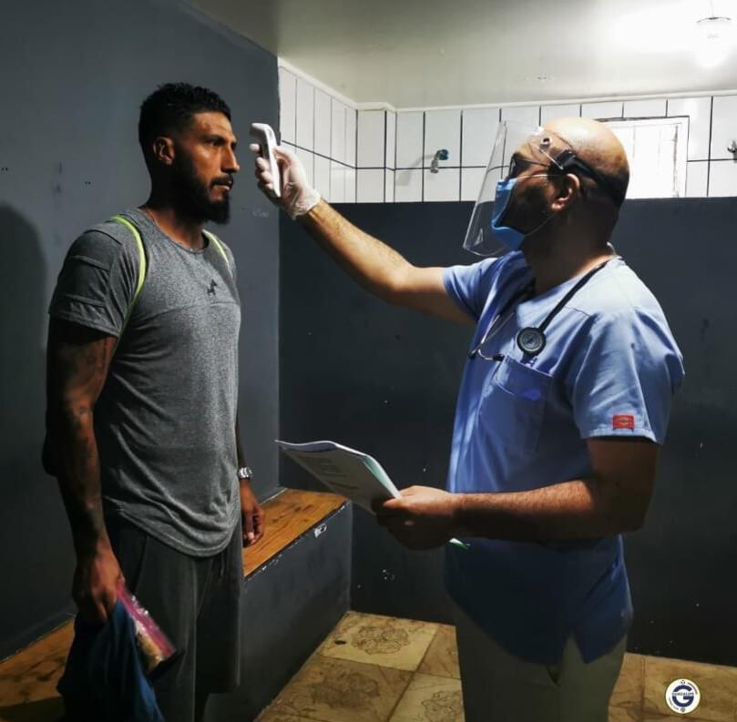 "Los grupos son de siete jugadores con una hora de diferencia (entre uno y otro) y utilizamos los dos camerinos del estadio y estarán separados dos metros”, explicó Alvaro Mora, médico florense.
