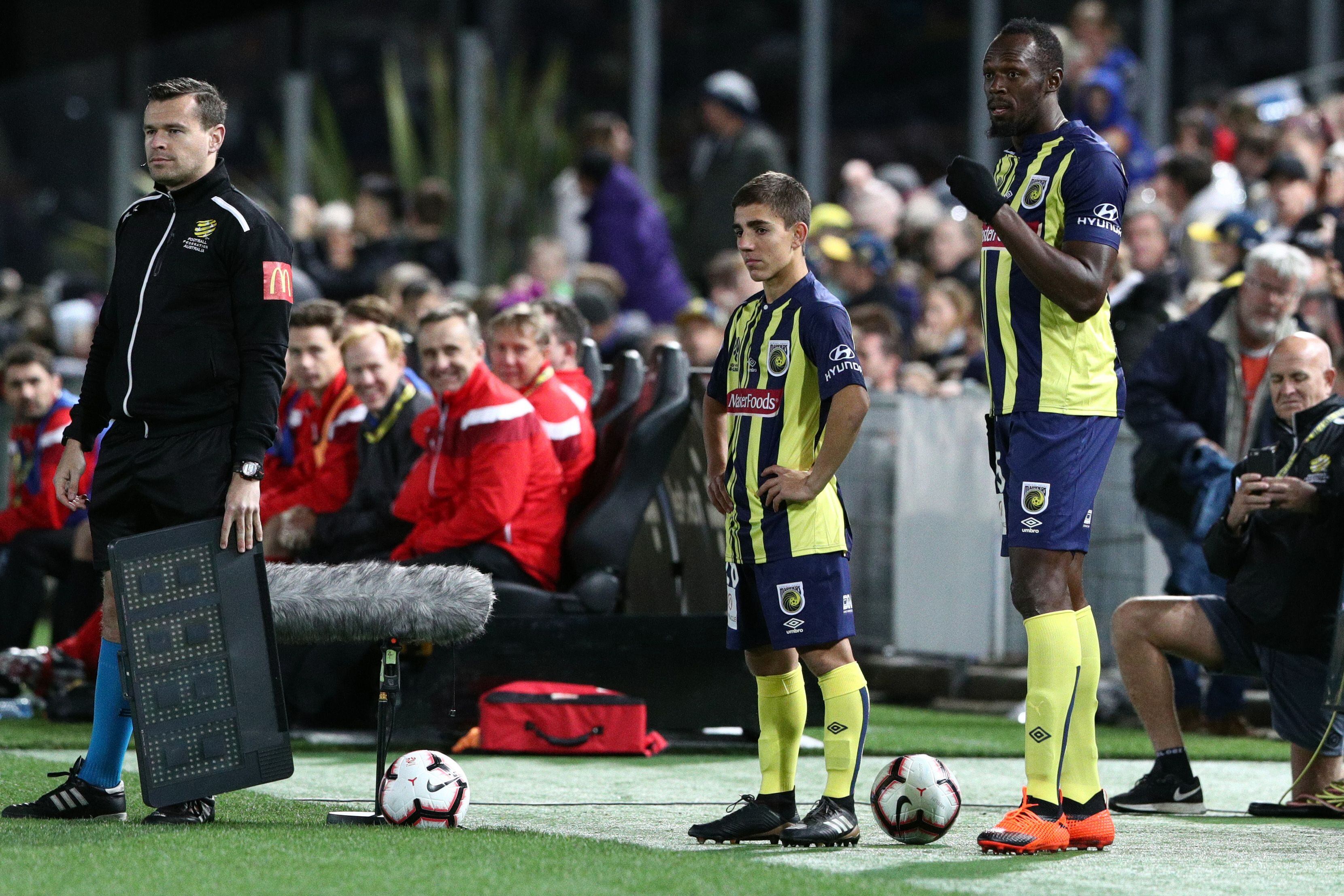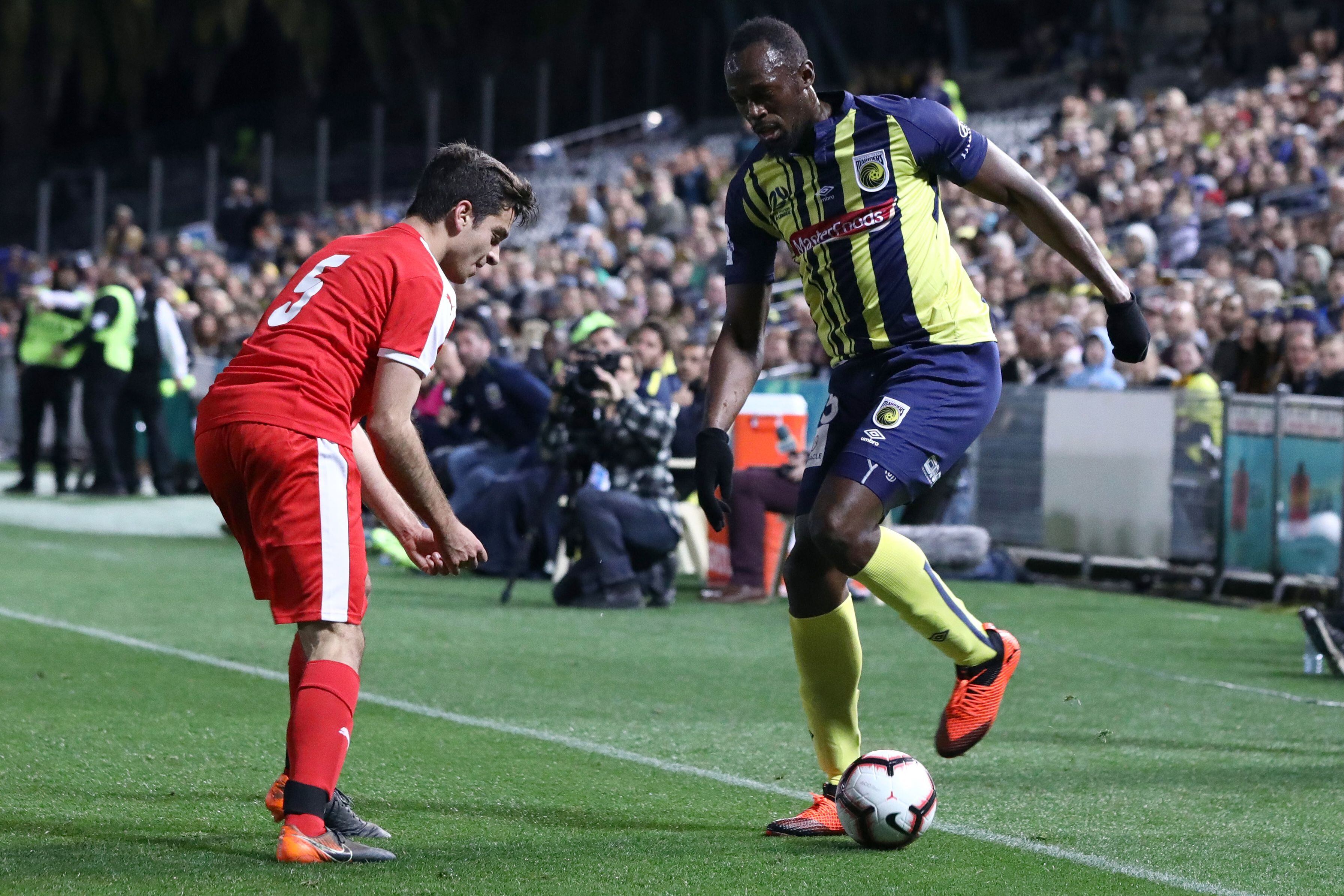 Bolt inició como lateral izquierdo y tuvo un torpe primer pase, pero enderezó el camino e incluso tuvo un par de oportunidades de gol antes que uno de sus disparos al arco fuera detenido.