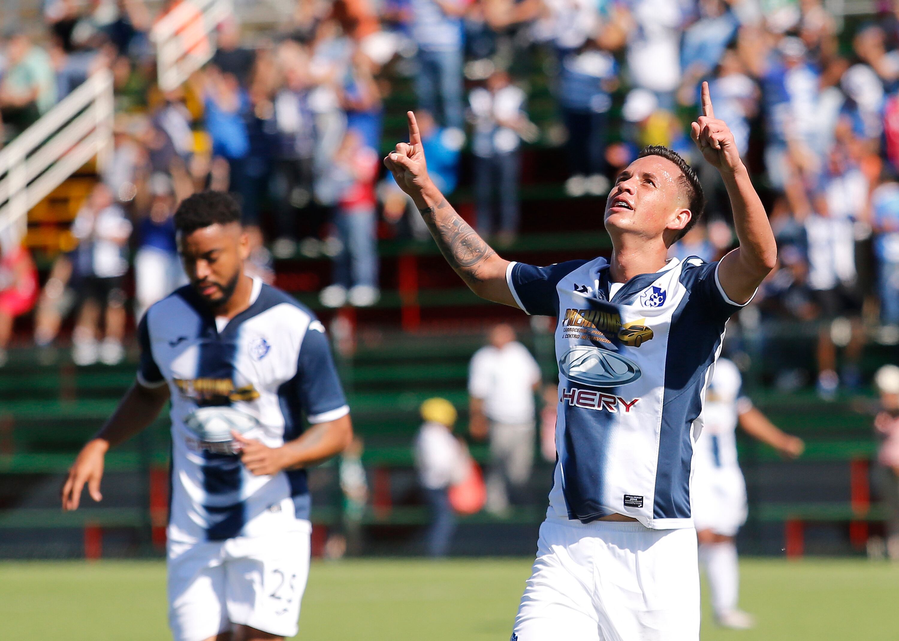El ímpetu local se bajó con el primer gol blanquiazul al minuto 31, luego de un centro de Paolo, una mala salida del meta Bryan Rodríguez y un cabezazo de Jameson Scott, lo que le permitió manejar mejor el partido a los visitantes.