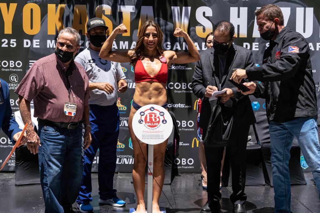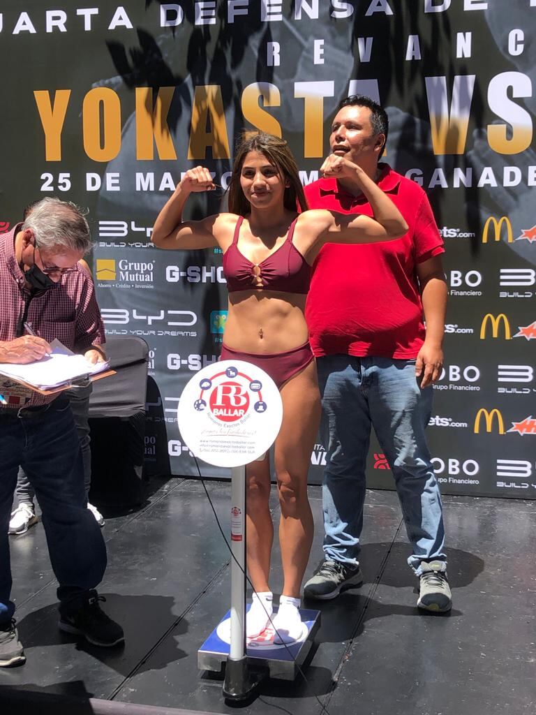 Yokasta Valle, campeona mundial de las 105 libras de la Federación Internacional de Boxeo, derrotó al pesaje este jueves, previo a su pelea de este viernes ante la japonesa Sana Hazuki. "Me siento emocionada, lista para que suene la campana", dijo la campeona del pueblo. Yoka para variar lució espectacular en un vestido de baño con los colores de Costa Rica, con lo que también mandó un mensaje de apoyo a la Sele para el juego de este jueves ante Canadá