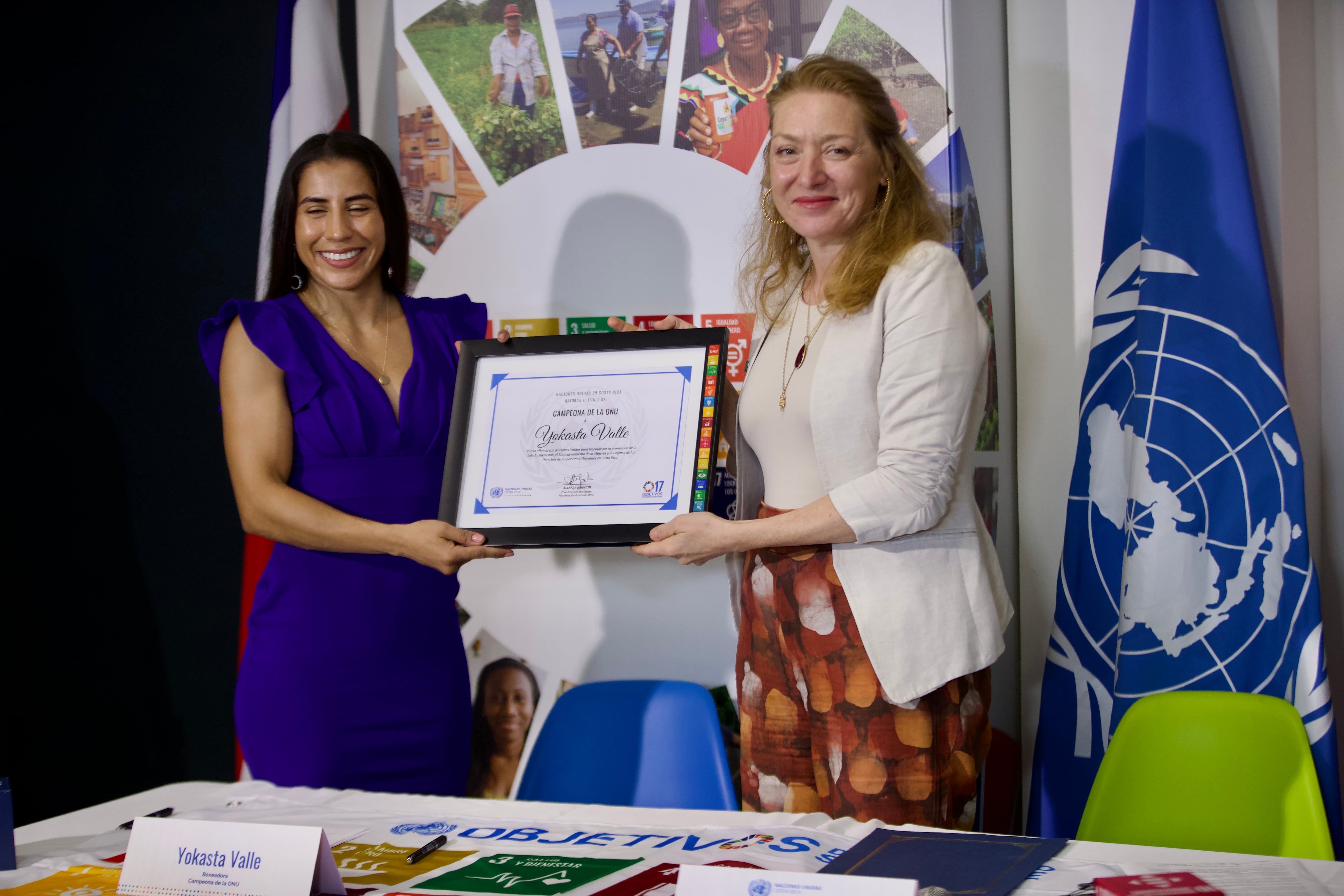 El reconocimiento se le otorgó en las instalaciones de esta organización en Pavas, por parte de la coordinadora residente de las Naciones Unidas, Allegra Biaocchi.