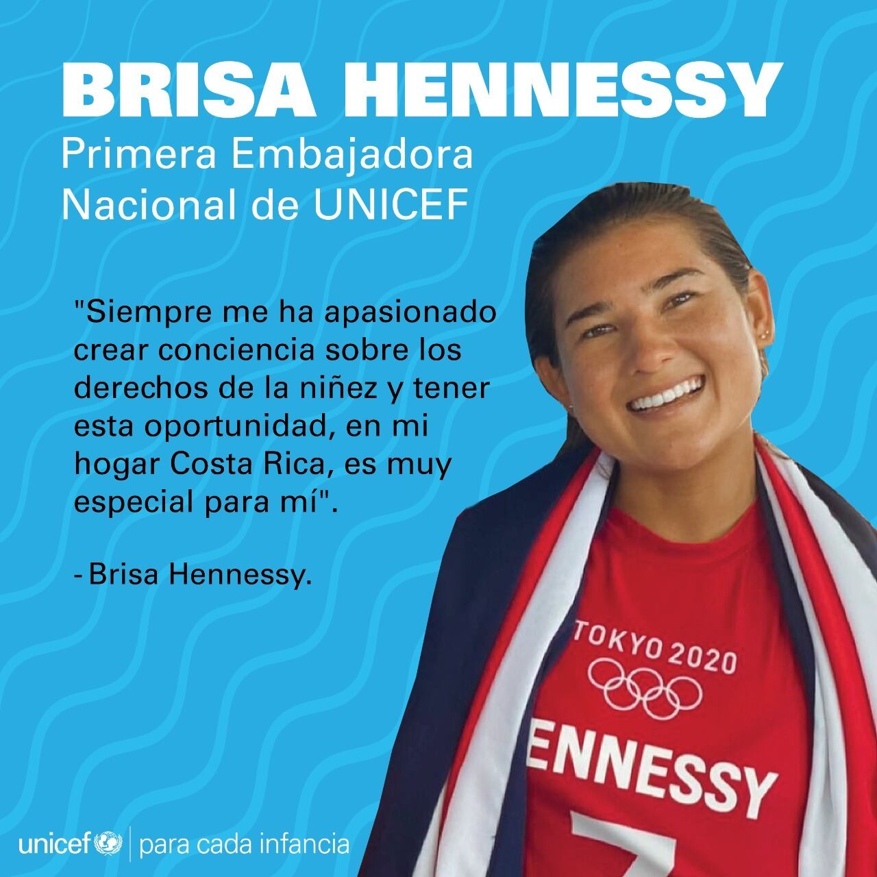 La surfista costarricense Brisa Hennessy fue designada este lunes como embajadora de UNICEF, lo que la convierte en la primera tica en recibir esta designación.