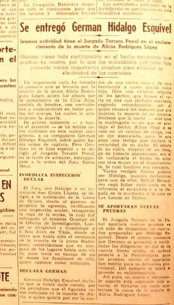 Pasaron 4 días, hasta que el 19 de agosto el hombre se entregó en el Juzgado Penal Tercero, él aseguró que vio que en los periódicos decía que lo estaban buscando por la muerte de Alicia.