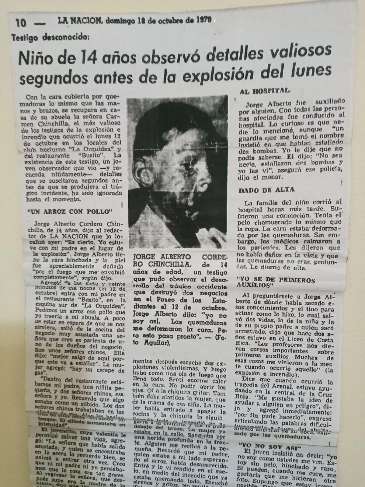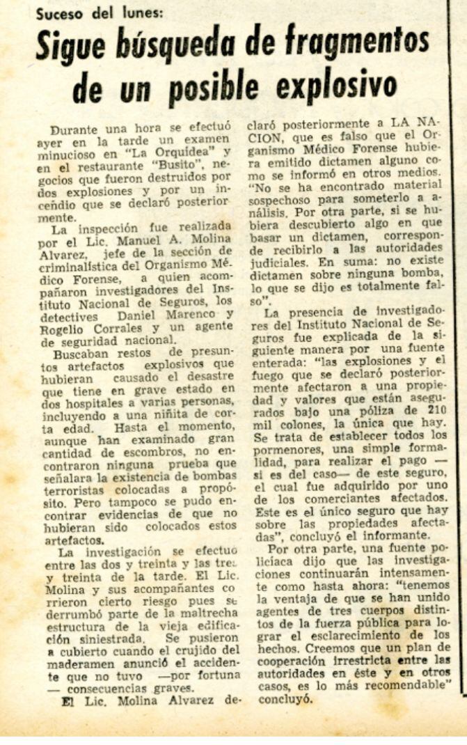 Según la publicación que hizo el periódico La Nación, en 1970, el relato de Alberto a los oficiales como testigo de lo ocurrido permitió determinar que la explosión del gas provocó tal emergencia, esa era la primera explosión de esa magnitud con un cilindro que se registraba en el país.