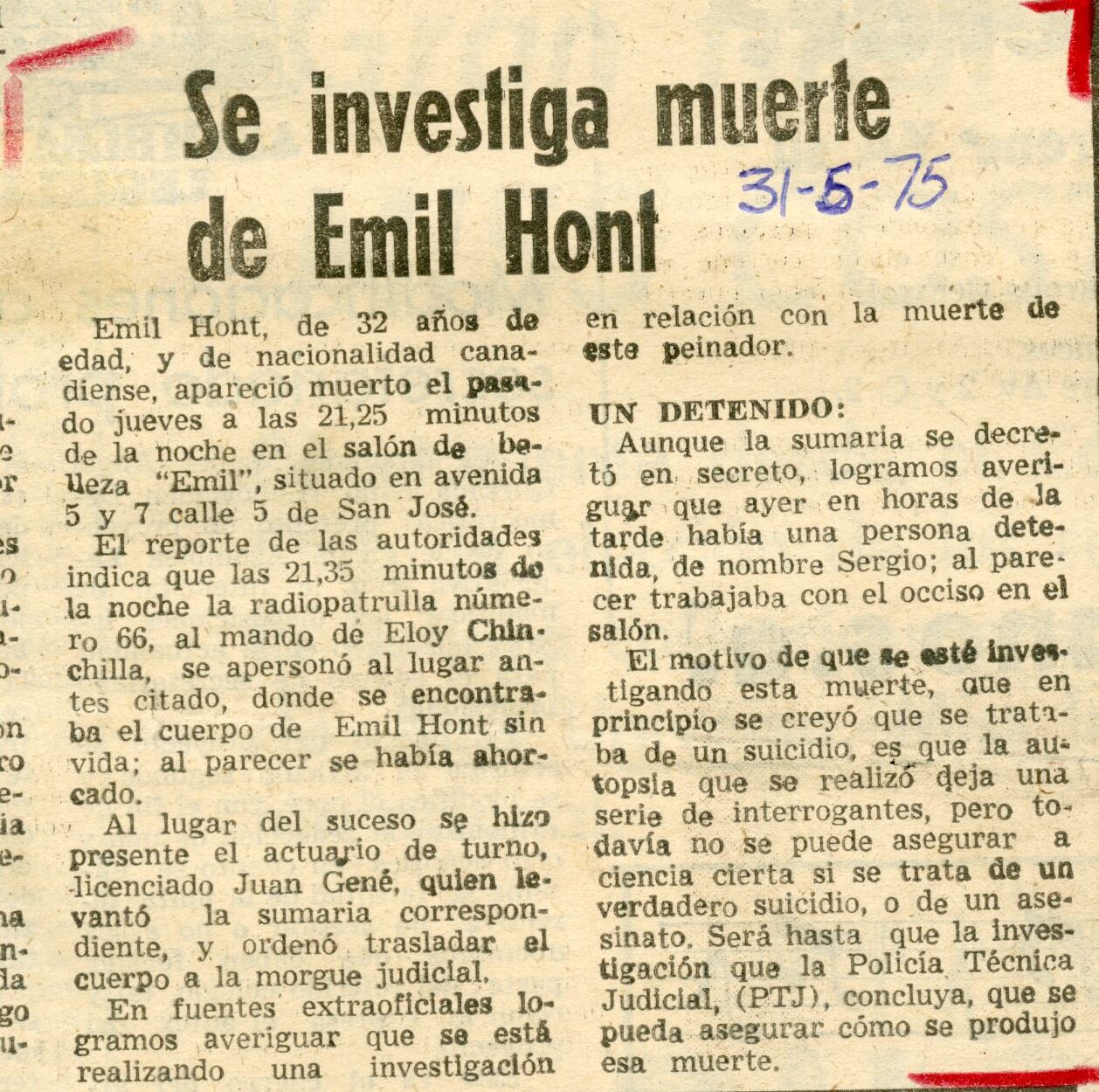 El investigador recordó que el socio y amigo de Emil fue detenido mientras los investigadores se encontraban a la espera del resultado de la autopsia, pues era necesario determinar si estaban ante un suicidio o ante un homicidio, porque por la evidencia los oficiales creían estar ante una tragedia.