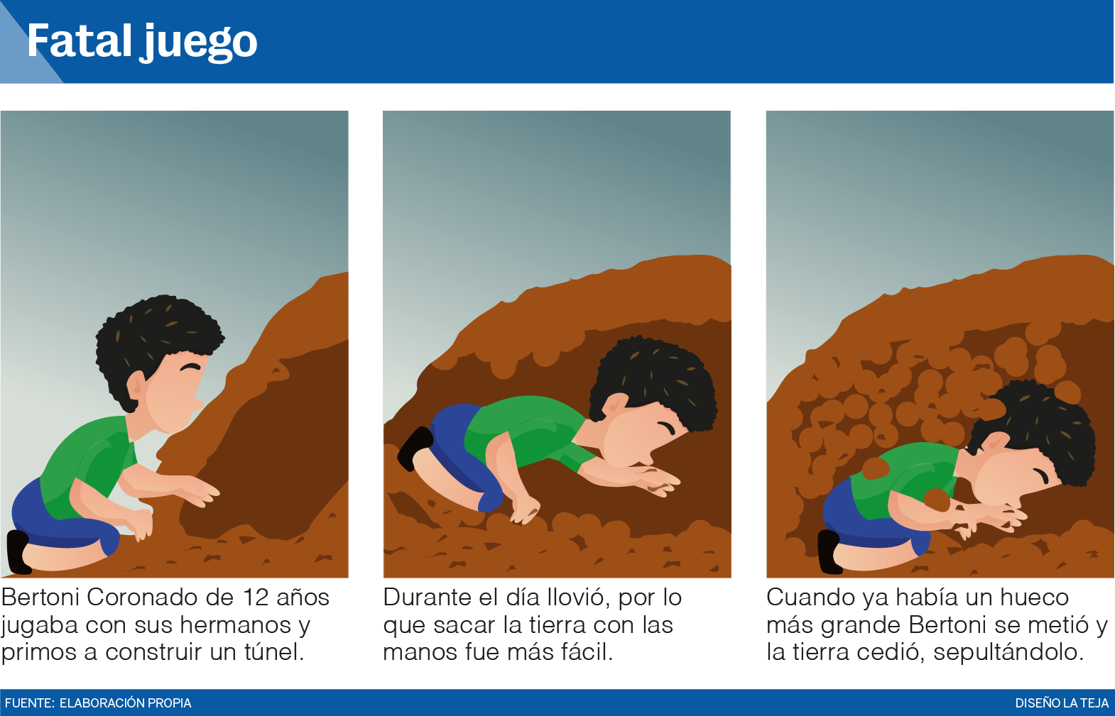 Su inocente juego de escarbar y abrir un hueco entre un montículo de tierra junto con sus primos y hermanos lamentablemente terminó en desgracia al ceder el terreno y sepultarlo.