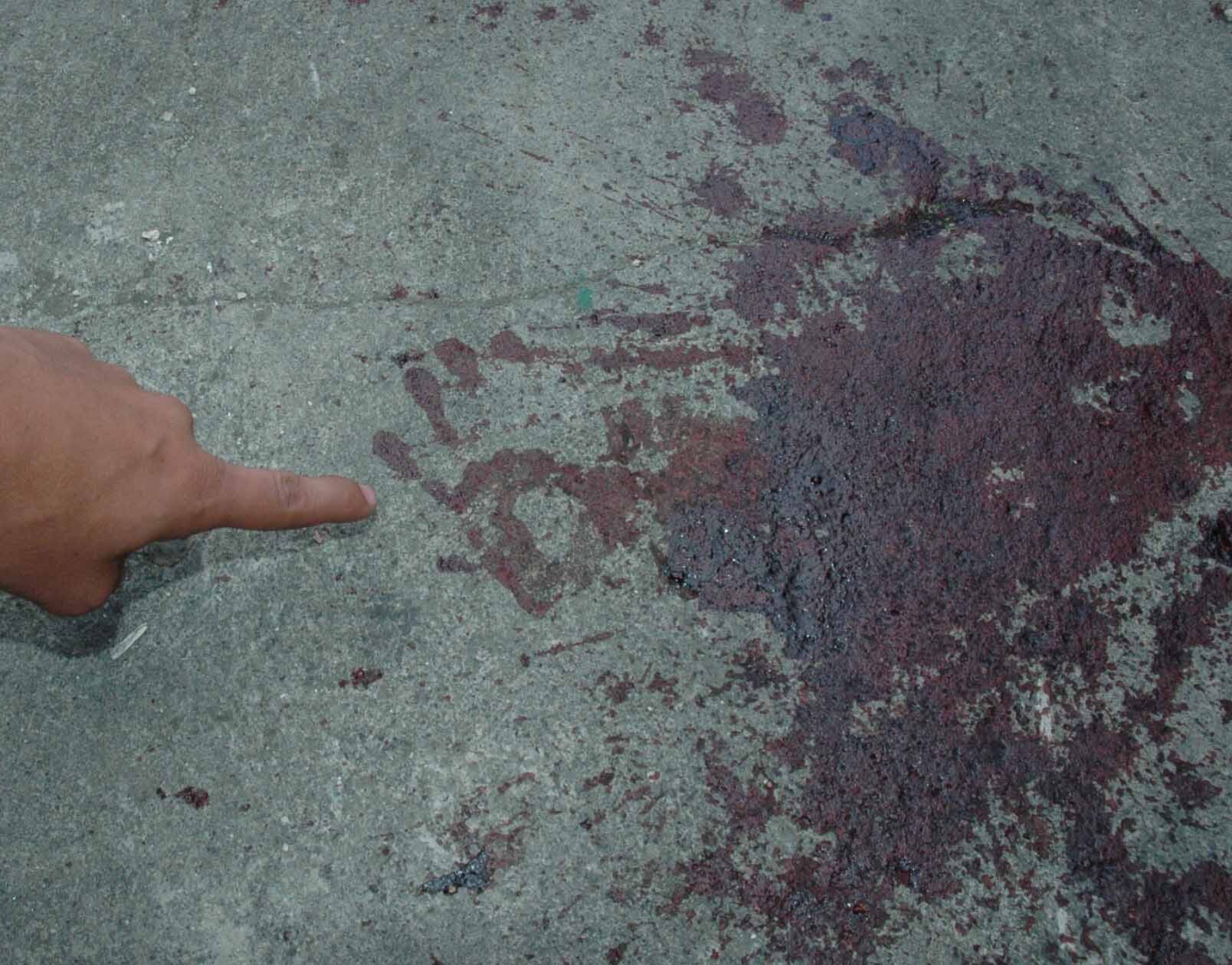 La imagen fue tan impactante que la pequeña hasta dejó la huella de su mano llena de sangre en el pavimento.