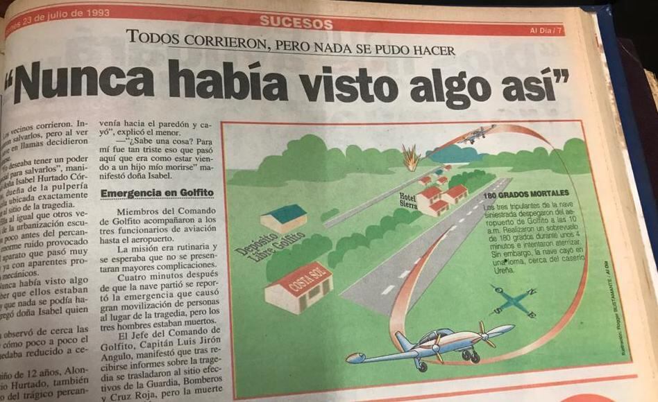 Quienes tienen más años de vivir en Golfito no olvidan aquel 22 de julio de 1993, incluso, se encargaron de que el recuerdo perdure en su comunidad, ya que en el sitio del accidente colocaron cruces y tumbas.