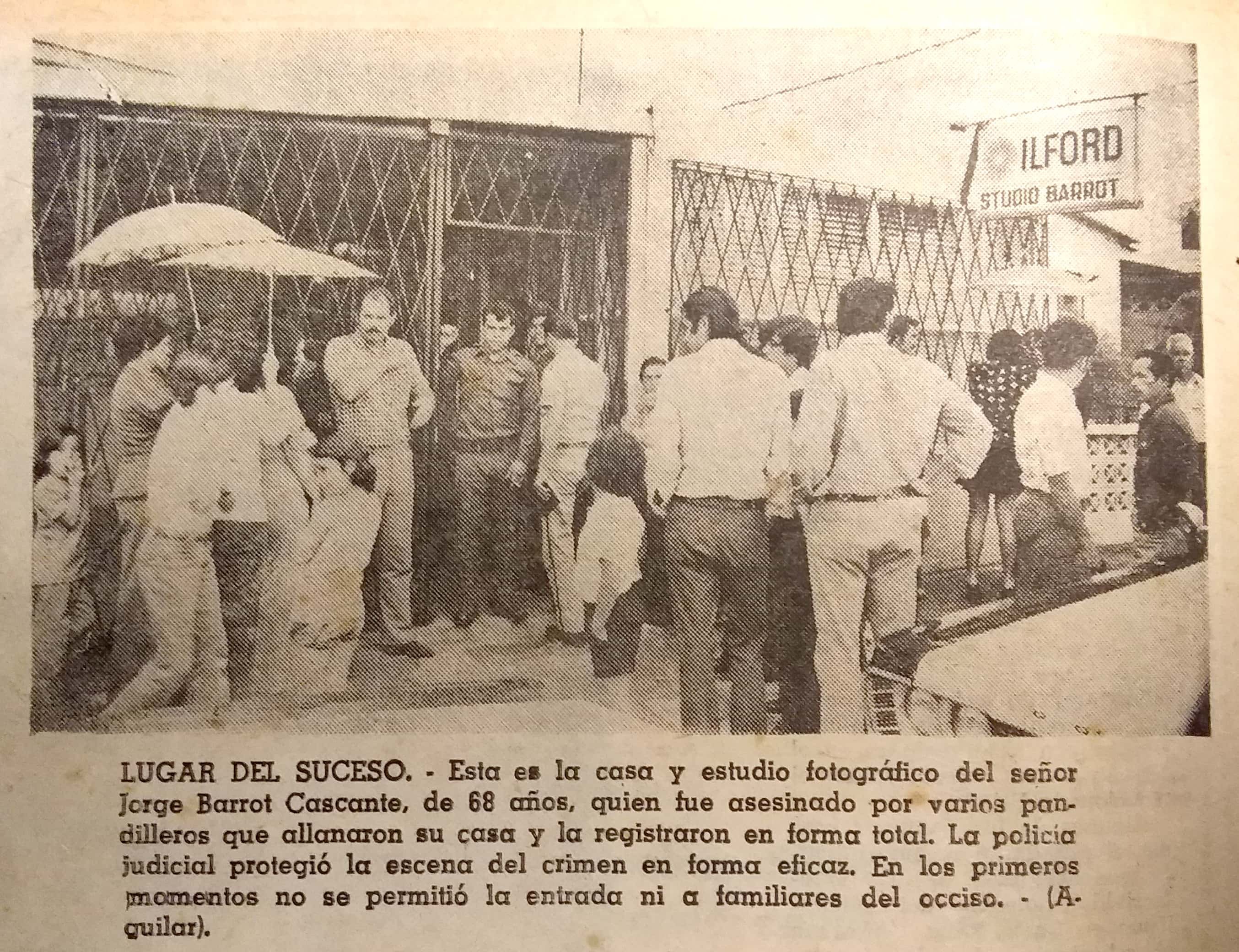 Se trató de la muerte del fotógrafo Jorge Barrot Sibaja, de 68 años, quien fue asesinado el 11 de octubre de 1974 dentro de su casa, ubicada en San Juan de Tibás. Ese caso fue archivado pues nunca se logró vincular a un sospechoso.