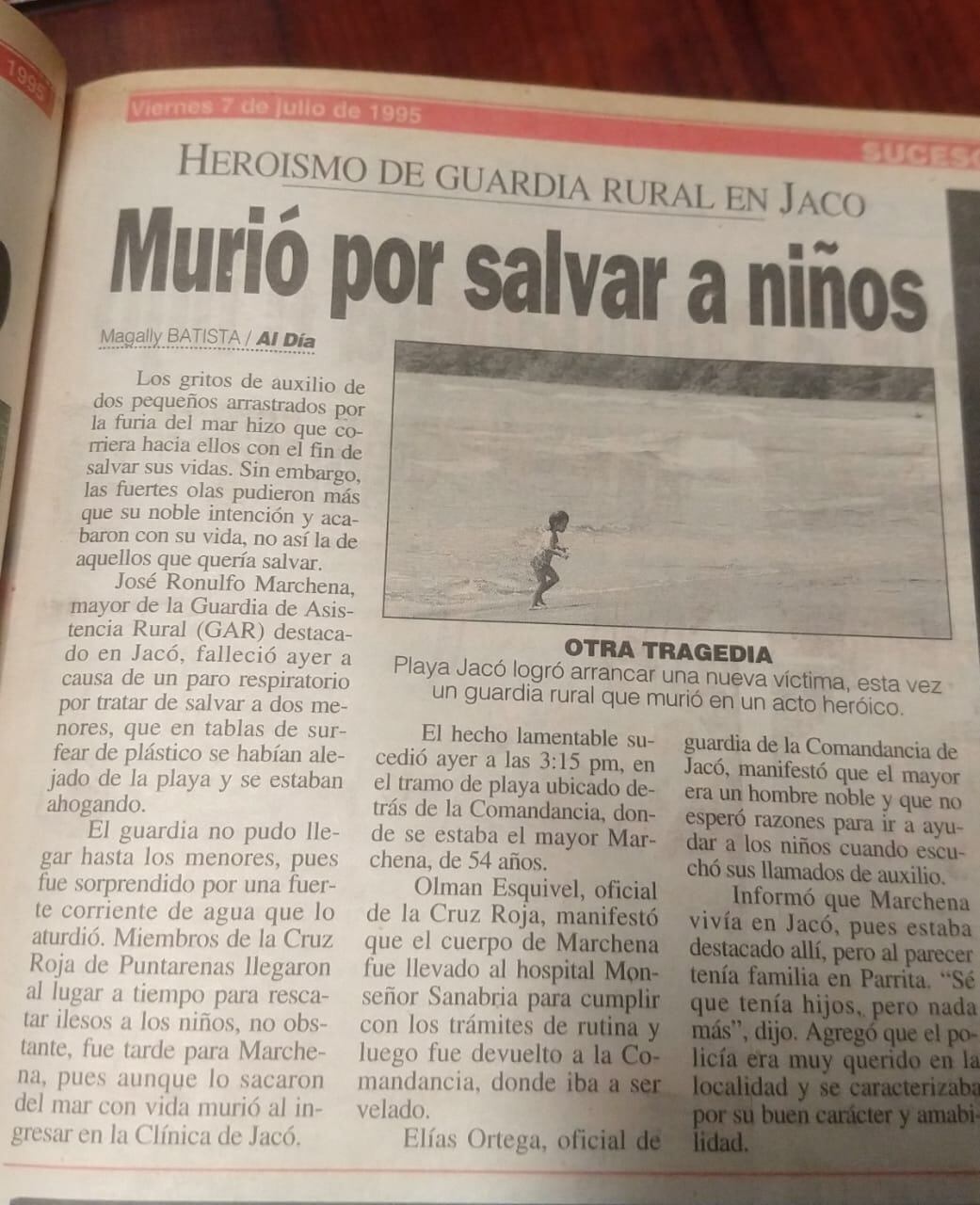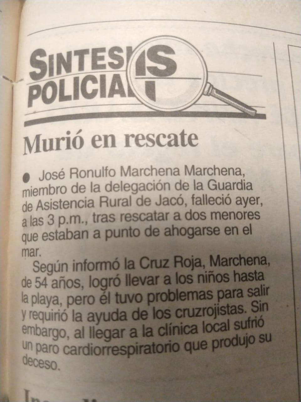 Todo ocurrió el jueves 6 de julio de 1995, él estaba en descanso cuando escuchó la alerta de que dos menores se ahogaban, así lo recuerda doña Carmen Figueroa, viuda de Marchena, de acuerdo a lo que le contaron los demás oficiales.