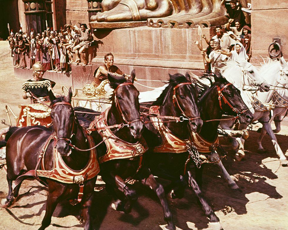 Si hay una escena que todos recordaremos siempre de Ben Hur es la de la carrera de cuádrigas. La lucha entre Judá y Messala en la arena.