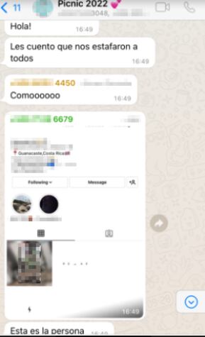 Contactamos a la supuesta estafadora, quien es de Puntarenas. En un principio no quiso atender nuestras llamadas, pero después respondió el mensaje que le dejamos al número de WhatsApp que les dio a las víctimas.