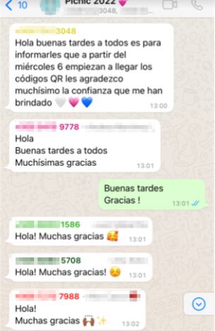 La supuesta vendedora hizo un grupo de WhastApp en las que incluyó a 40 personas para tenerlos informados y avisarles cuándo estaban disponibles sus códigos. Aunque se dice que hizo varios grupos.