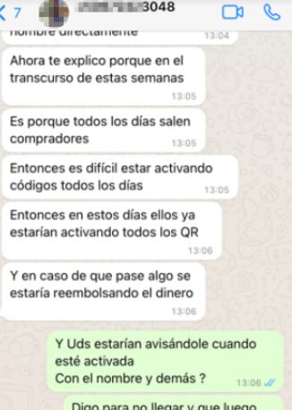 Sin embargo, los días pasaban y solo recibían mensajes de ella diciéndoles que tuvieran paciencia que en cualquier momento les llegaban los códigos QR, pero se quedaron esperando.