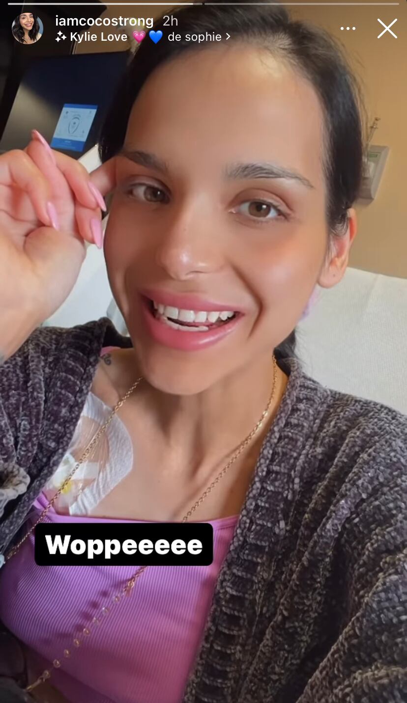 Después de eso, Coco desapareció de las redes sociales hasta al final de la tarde de este viernes, cuando volvió a compartir dos historias en esa red social donde mostró su alegría por dejar el hospital y regresar a casita.