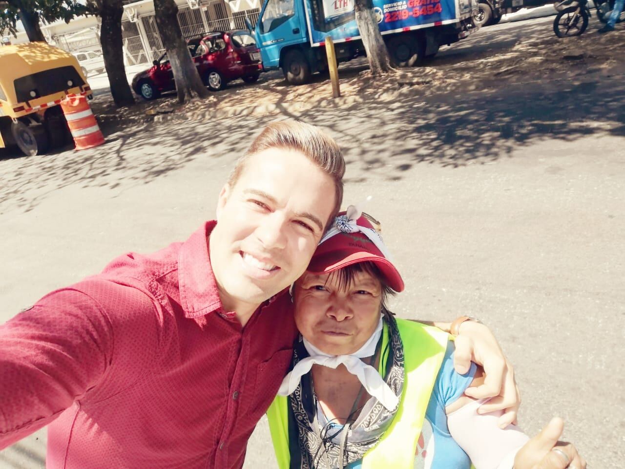Este jueves el presentador detuvo su carro como todas las mañanas para ella le diera “la bendición, la bendición”, antes de irse para el programa Giros, de Repretel, cuando llegó un hombre en moto a buscar a la “Trafi”.