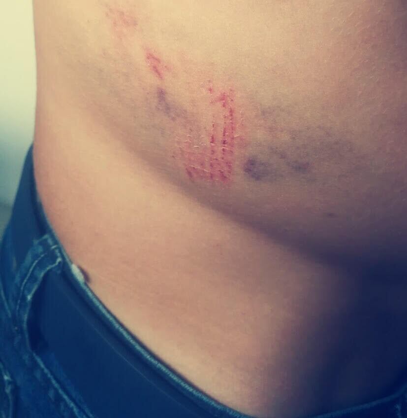 El exactor de la serie La Pensión quedó con un "recuerdito" de color morado y unos chollones que lo obligaron a tomar pastillas para desinflamar y aliviar el dolor.