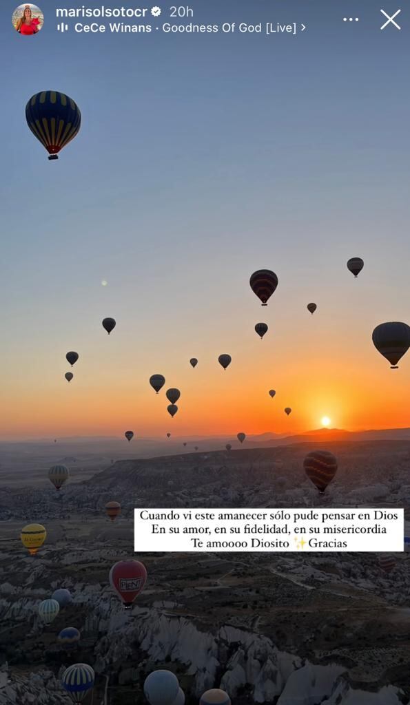 “Cuando vi este amanecer solo pude pensar en Dios. En su amor, en su fidelidad, en su misericordia. Te amo Diosito. Gracias”, expresó Mari en otra historia ya desde las alturas.