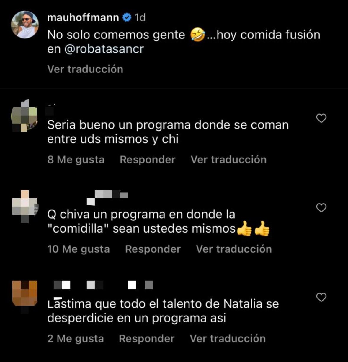 Los seguidores del atlético presentador no aguantaron nada y empezaron a escribirle: “Sería bueno un programa donde se coman entre ustedes mismos”, “lastima que todo el talento de Natalia se desperdicie en un programa así”, “hoy pecan con comida”.