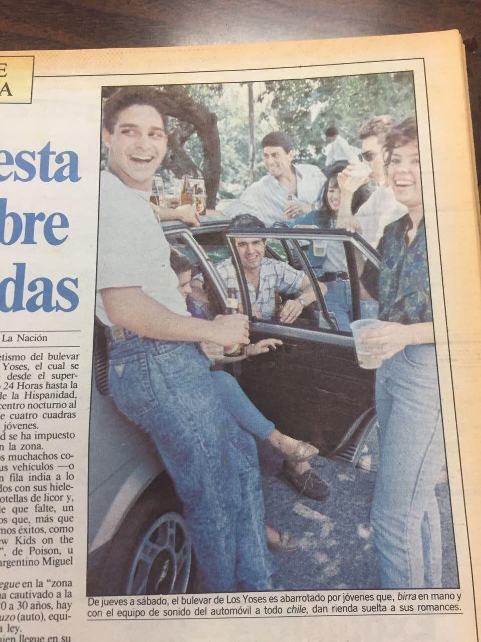 “El bulevar de Los Yoses era famoso en ese tiempo y querían hacer una nota de eso. Ese mismo día (que salió la publicación) empieza a sonar el teléfono de mi casa como nunca antes, todas las llamadas eran para mi papá, yo todo orgulloso por mi primera foto, pensaba que estaban llamando a mi tata para felicitarlo porque su hijo había salido en el periódico, pero mi papá colgaba y me decía: ‘ahora más tarde hablamos’”, continuó.