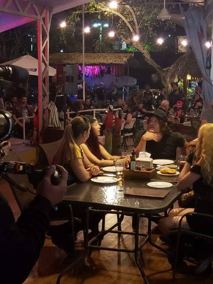 Norman anda con su grupo de producción y con varios motociclistas, al parecer ticos, con los que habría recorrido algunas calles de El Roble y el paseo de los Turistas.