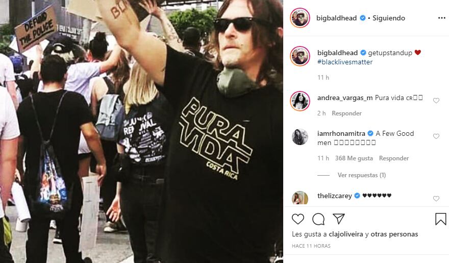 En esta red social Reedus cuenta con más de 6,7 millones de seguidores y hasta el medio Daily Mail hizo una nota referente a su camiseta.