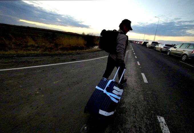 “Casi todos los carros que aparecen en esta foto llevan solo mujeres y niños, la mayoría sin ninguna señal visible de equipaje y con un coche como su única posesión de valor”, escribió junto a una imagen publicada en su cuenta de Twitter, en la que se le puede ver jalando de una maleta en la calle.