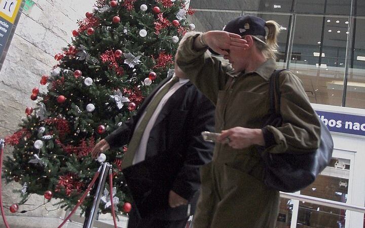 En su afán de cubrirse la cara y salir rapidito del lugar, se llevó por delante una puerta de vidrio lo cual la enfureció más . Mientras, más relajado, su novio arrastraba un carrito con las valijas.