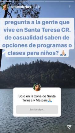 “Pregunta a la gente que vive en Santa Teresa CR. ¿De casualidad saben de opciones de programas o clases para niños”, escribió.