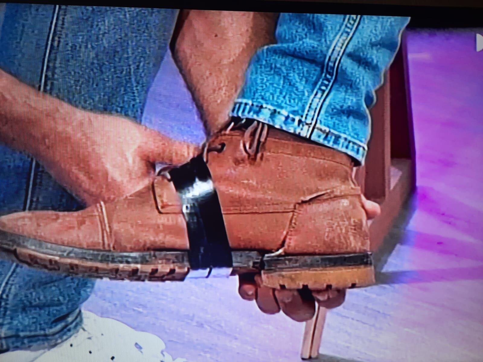 Cuando Max le estaba enseñando a los demás cómo es el zapateo, le dio tan duro al piso que se le quebró en dos el zapato derecho, causando la risa de todo mundo.