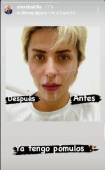 El ramonense contó en sus historias de Instagram que se inyectó botox de nuevo los labios, así como en los pómulos, el mentón, la nariz y la mandíbula.