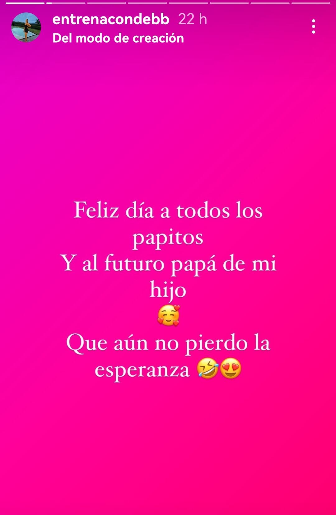 La entrenadora personal escribió: “Feliz día a todos los papitos y al futuro papá de mi hijo, aún no pierdo la esperanza”.