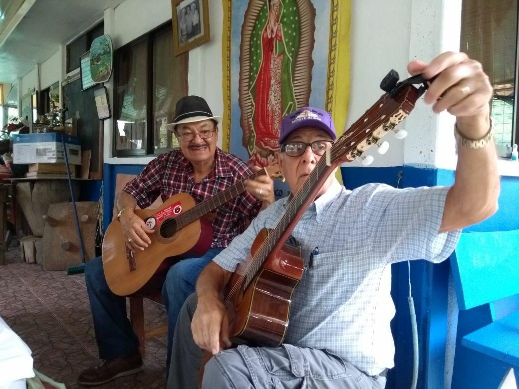 Se echan piezas como "La Culpa la tuvo el guaro" y "La vieja serenata" y entre pieza y pieza se les pasan las horas vacilando.