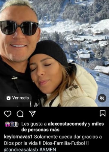 Andrea Salas y el portero Keylor Navas compartieron en sus cuentas de Instagram lo bien que la pasan en Suiza.