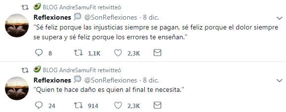 Pese a que la modelo decidió no contestar ninguno de los comentarios negativos, sí siguió tuiteando filazos: “Actualmente numerosos programas en Internet y televisivos están dando aún más importancia a asuntos de escasa trascendencia como la vida privada de otras personas famosas, pero despiertan un gran interés entre el público. Perspectiva estrictamente periodística”.