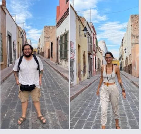 La idea era ir en pareja pero eventualmente cambió cuando conocimos a Martín, que es un cantautor costarricense y que él ya ha tenido varios viajes así como este, que básicamente lo que estamos haciendo es financiando nuestro viaje tocando en bares, restaurantes y en la calle.