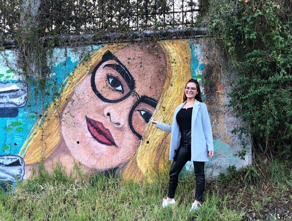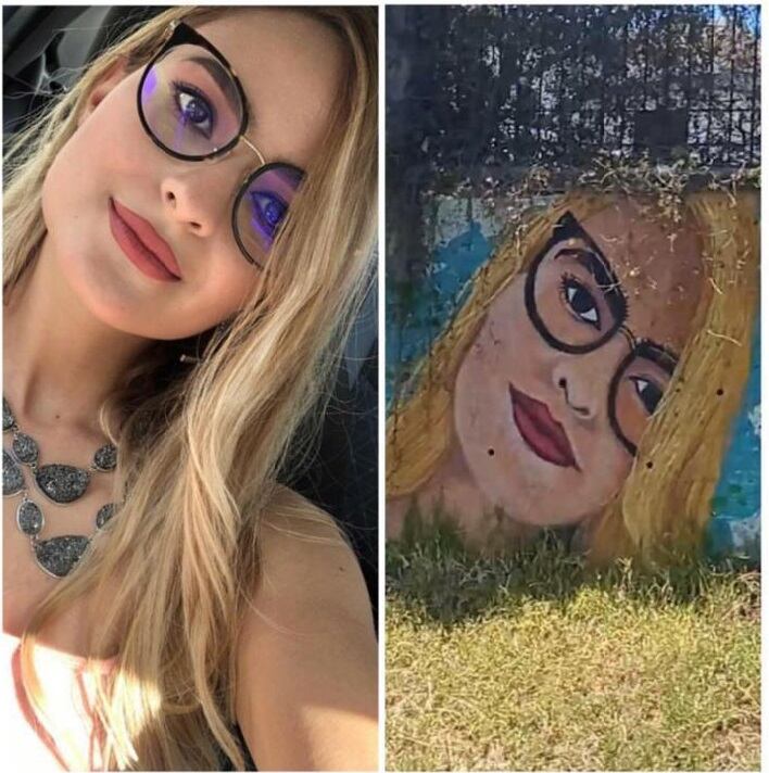 Andrea se llevó la sorpresa de que habían pintado su cara en un muro por las cercanías del Colegio de Veterinarios a inicios de este mes, pero resultó que hacía más de siete meses que la habían grafiteado.