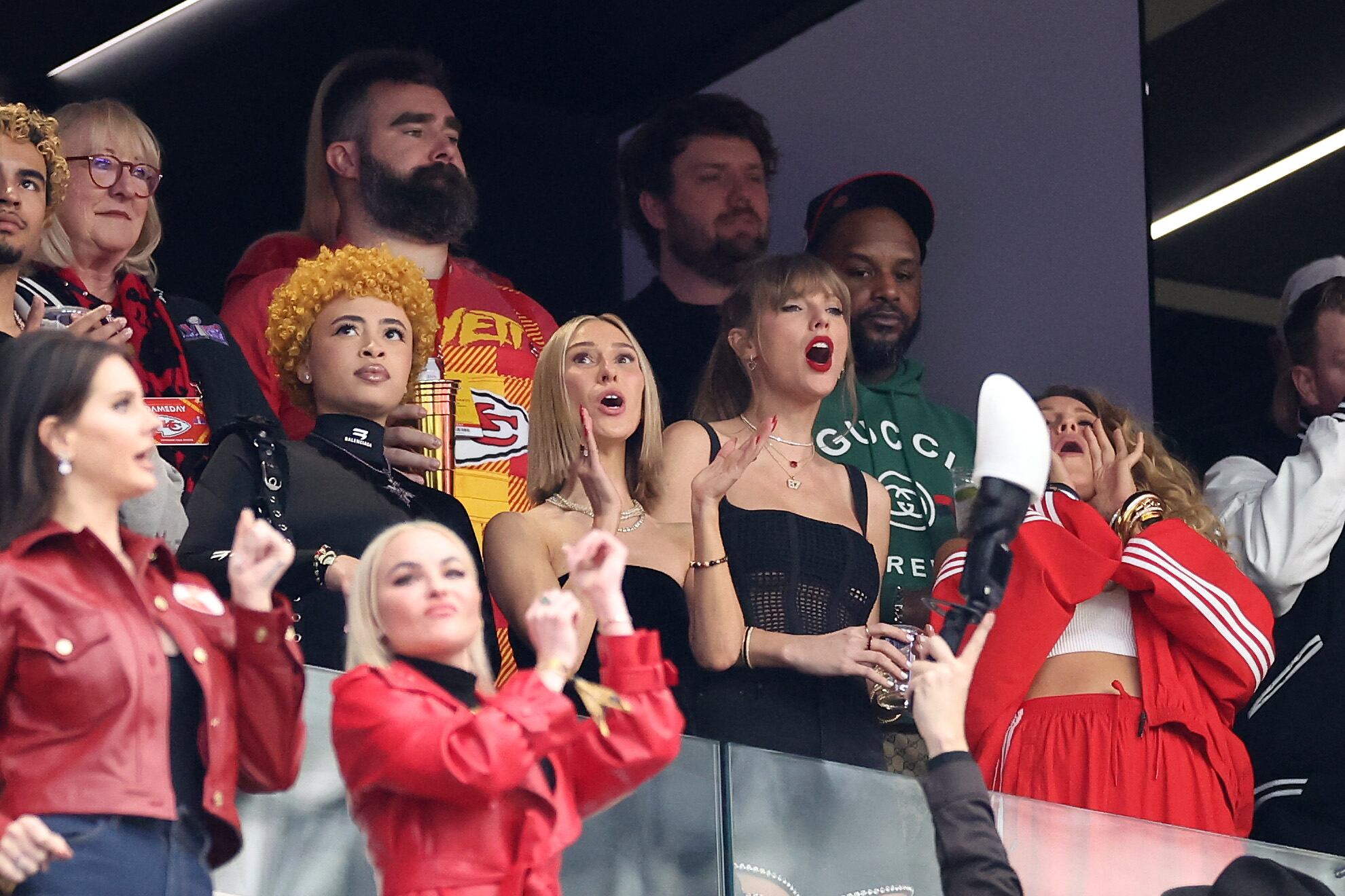Acompañada de una colección de famosos, la superestrella del pop Taylor Swift anima a su pareja Travis Kelce y a los Kansas City Chiefs en el Super Bowl número 58, que se lleva a cabo en Las Vegas.