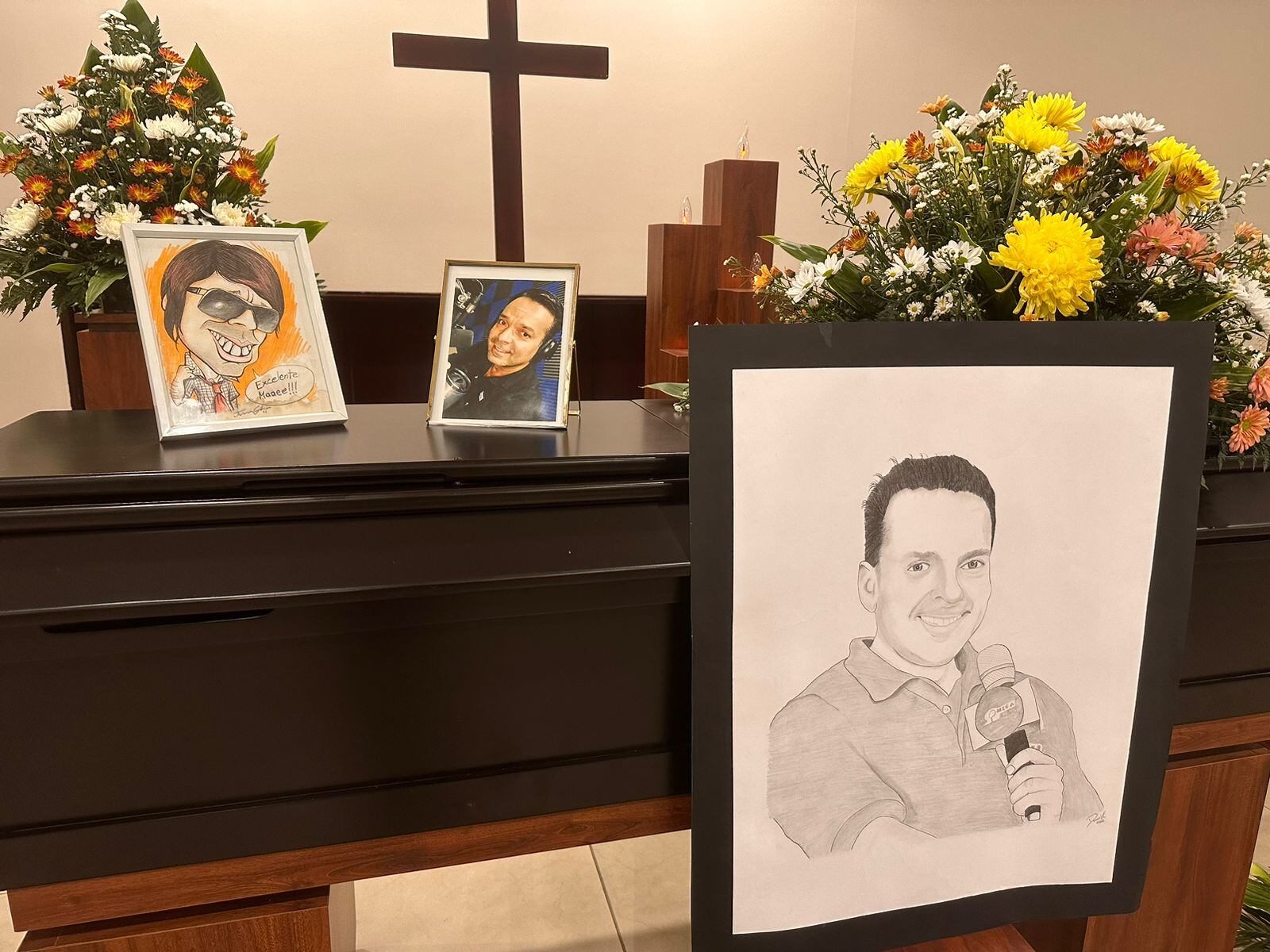 Los restos de Kawas están rodeados de muchas flores y sobre el ataúd hay una foto suya y una caricatura de Chito Pitt.
