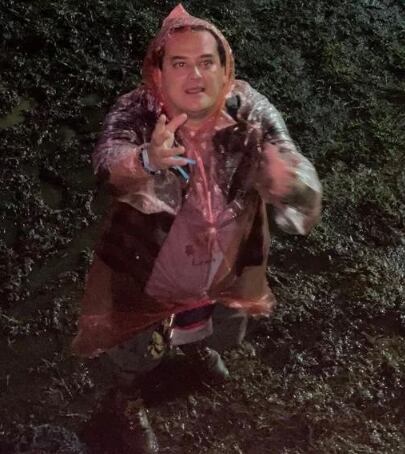 Su gran amigo Yiyo Alfaro le tomó una foto que terminó convirtiéndose en meme, pues Choché aparece con una capa toda empapada y embarrialada.