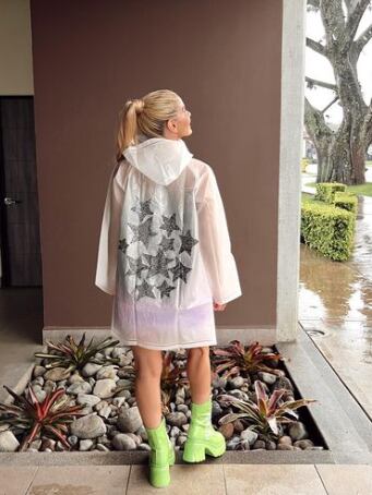 La pareja del momento, Verónica González y el modelo Jesse del Valle, se vistieron muy fresquitos, pero al igual que el resto de asistentes tuvieron que cubrir sus galas con una capa de plástico.