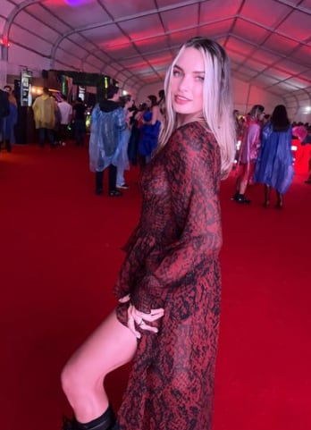 Ella, al igual que muchas de las presentes, pudo mostrar su vestimenta hasta avanzadas horas de la noche, cuando por fin escampó alguito.