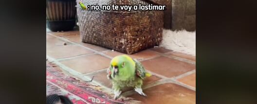 Varios usuarios de la plataforma han compartido el video en el que un lorito habla de tú a tú con su dueña, quien le dice que mejor se queda ahí (con distancia) pues piensa que el emplumado la va a picar.