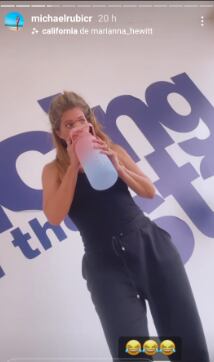 Para quitarle este “vicio”, el bailarín optó por regalarle un botellón para que lleve solo agua a los ensayos, y por lo visto ya está logrando su objetivo.