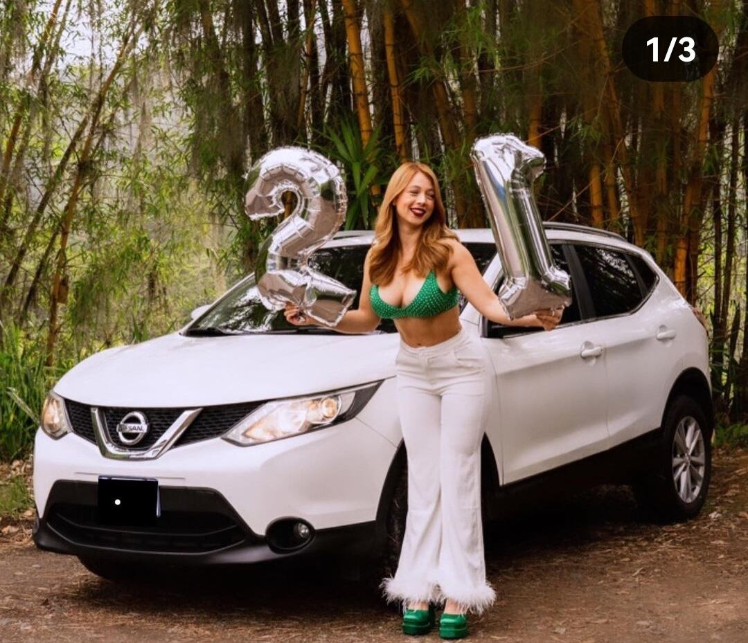 Ella decidió darse un regalazo de cumpleaños luego de muchos meses de trabajo y se compró su primer carrito nuevo y de paquete. Para nunca olvidar este momento tan importante decidió hacerse una sesión de fotos junto su nuevo chineado.