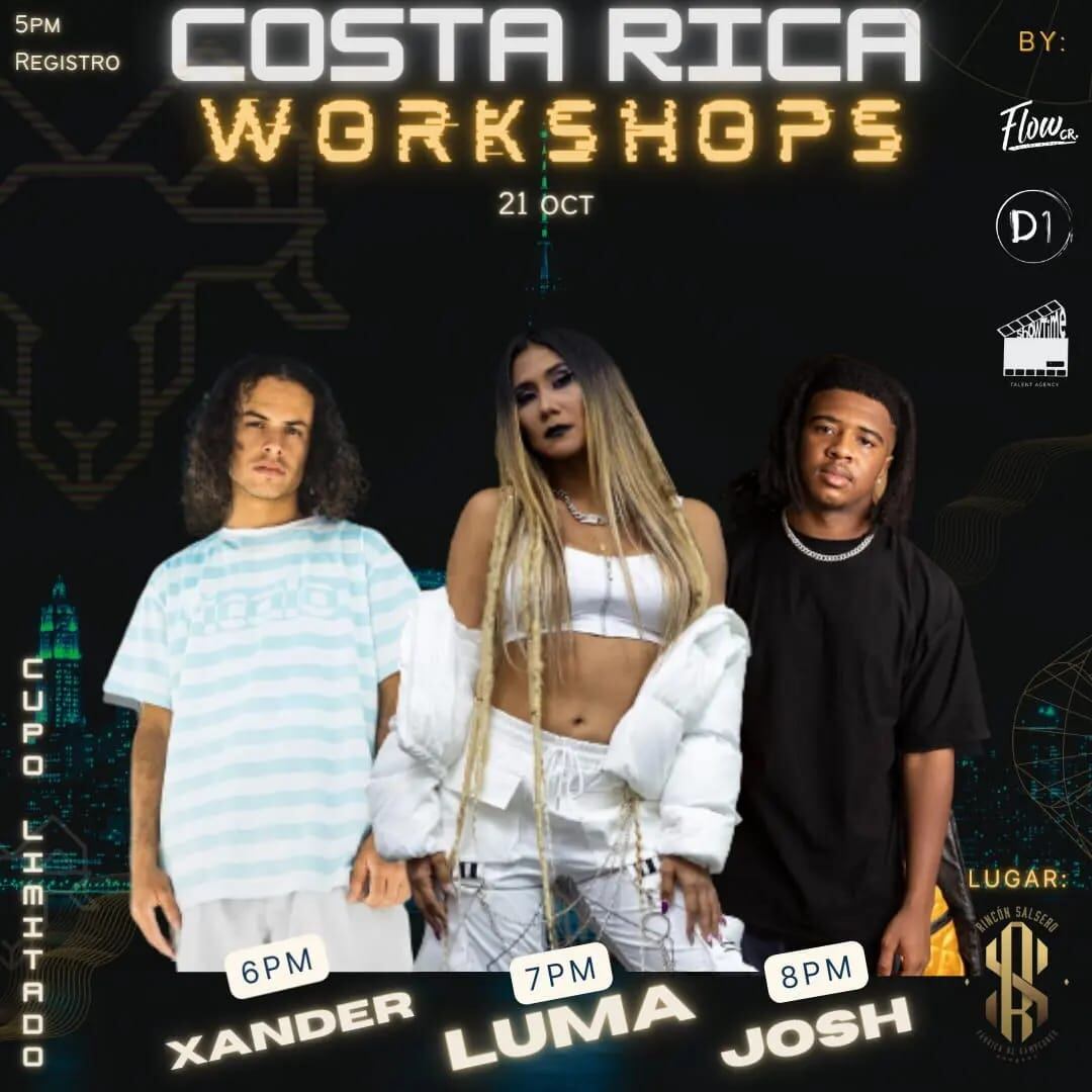 Los bailarines nacionales Andreína Méndez y Alex Salazar contaron que Lumarie, Xander y Josh Price estarán impartiendo un taller, cada uno por aparte, este viernes 21 de octubre en la academia Rincón Salsero en Zapote.