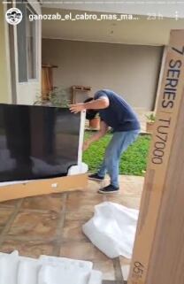 El musculoso compartió en sus historias de Instagram que les compró unos muebles, una pantallota, un gran espejo y hasta una cocina.