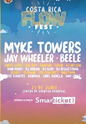 A pesar de toda la bulla que se ha hecho, el cantante Bryan Ganoza no aparece en la lista oficial de artistas que se presentarán en el Costa Rica Flow Fest.