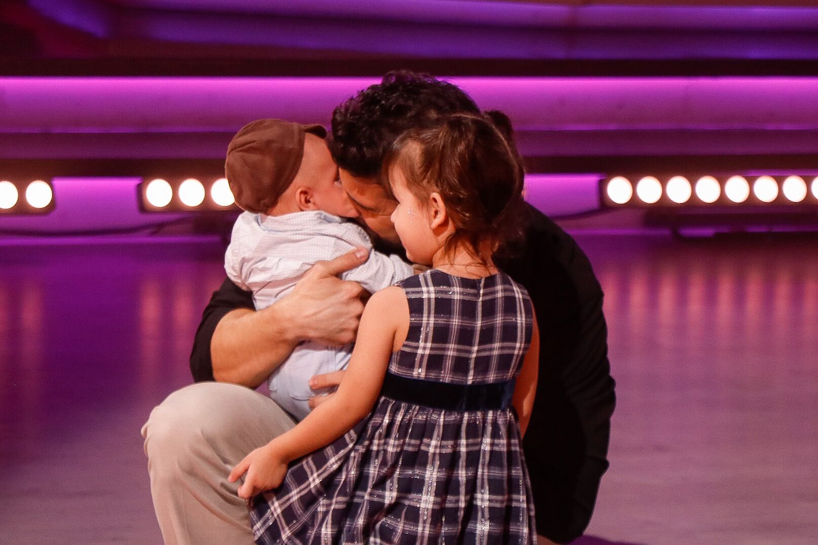 Luego de su baile le llevaron a sus dos hijos y el cantante no pudo contener el llanto.