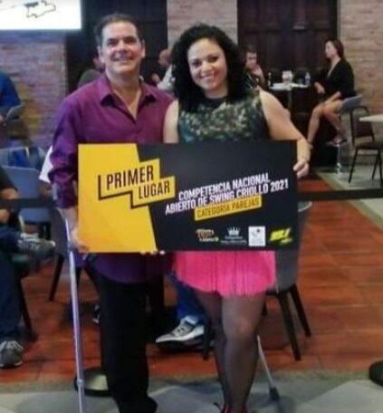 Negro, como le dicen sus amigos, y su pareja de baile, Rocío Espinoza, se coronaron el viernes pasado en la Competencia Nacional Abierto de Swing Criollo 2021 que organizó la emisora La Mejor 99.1 F.M..